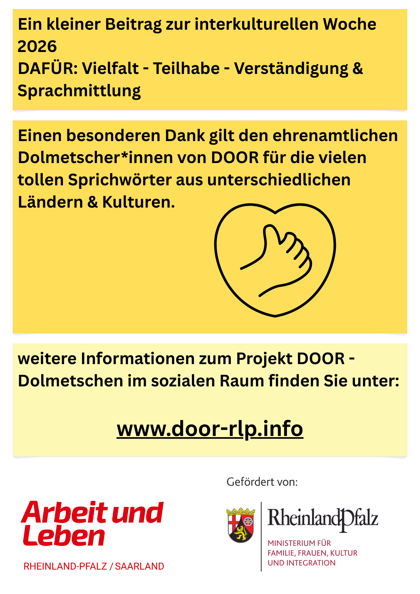 FÜR Vielfalt, FÜR Teilhabe, FÜR Verständigung & Sprachmittlung – Dolmetscher*innen vom Projekt DOOR stellen Sprichwörter aus ihren Kulturen und deren Bedeutung vor.